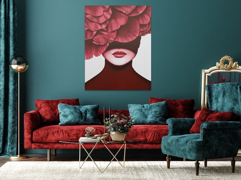 La combinación de blanco, negro y gris crea un efecto visual impactante, mientras que el color rojo rompe la monocromía y añade un toque de color. La figura femenina, elegante y estilizada, transmite una sensación de sofisticación y modernidad. A pesar de su carácter extremo, puede adaptarse a diferentes estilos decorativos, desde el minimalista hasta el contemporáneo, siendo una obra muy versatil