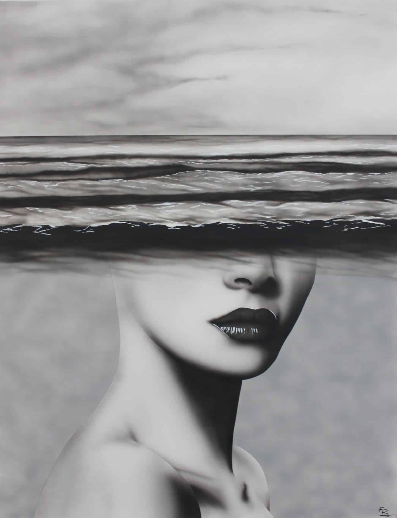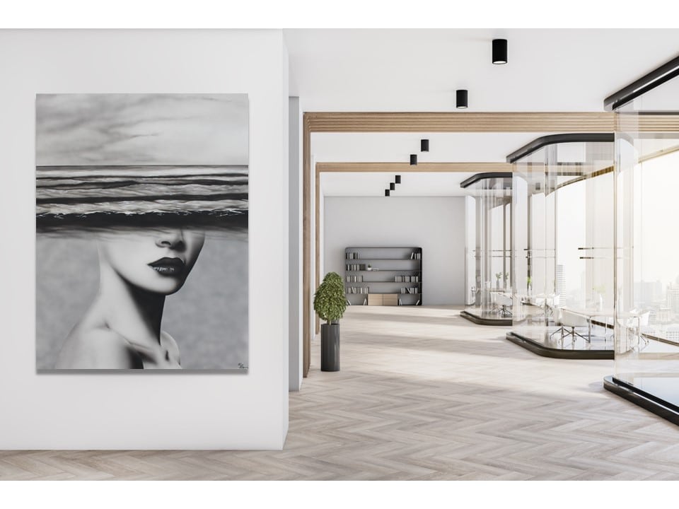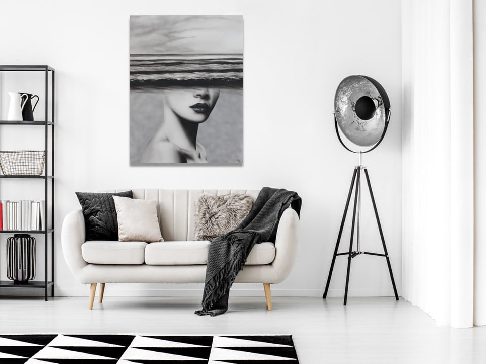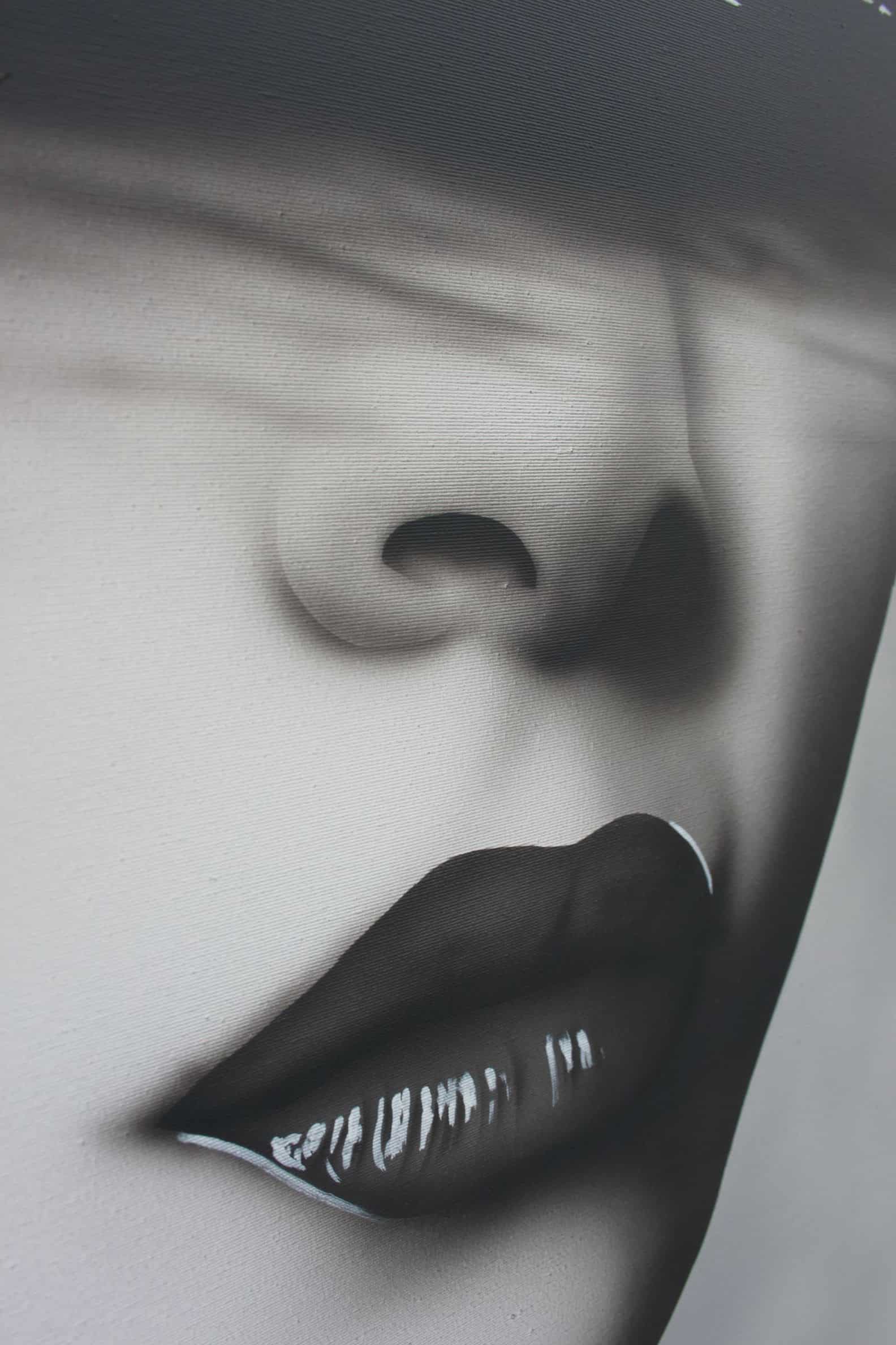Cuadro original pintado a mano y trabajada con aerógrafo. Mujer en blanco, negro y matices grises. Obra muy extremada para ambientes atrevidos