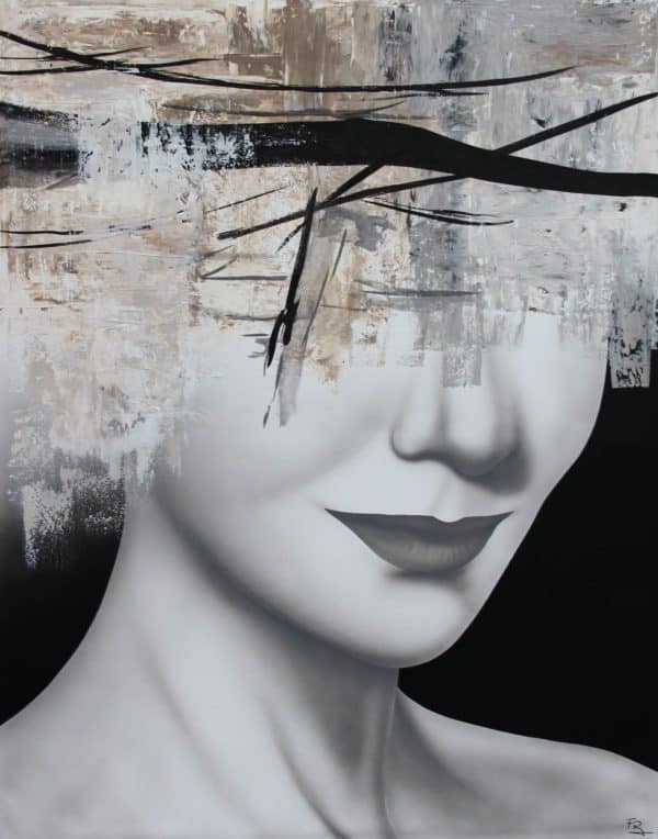 Cuadro original pintado a mano y trabajada con aerógrafo. Mujer en blanco y negro con espatulado en marrones, grises y pinceladas negras combinando entre si. Obra muy extremada para ambientes atrevidos