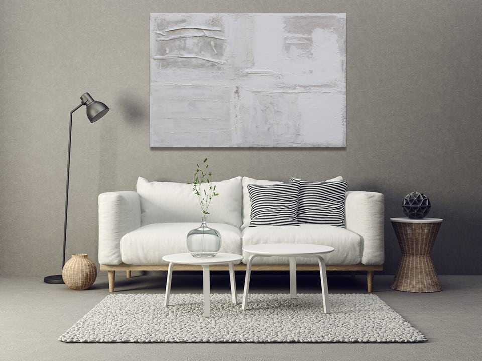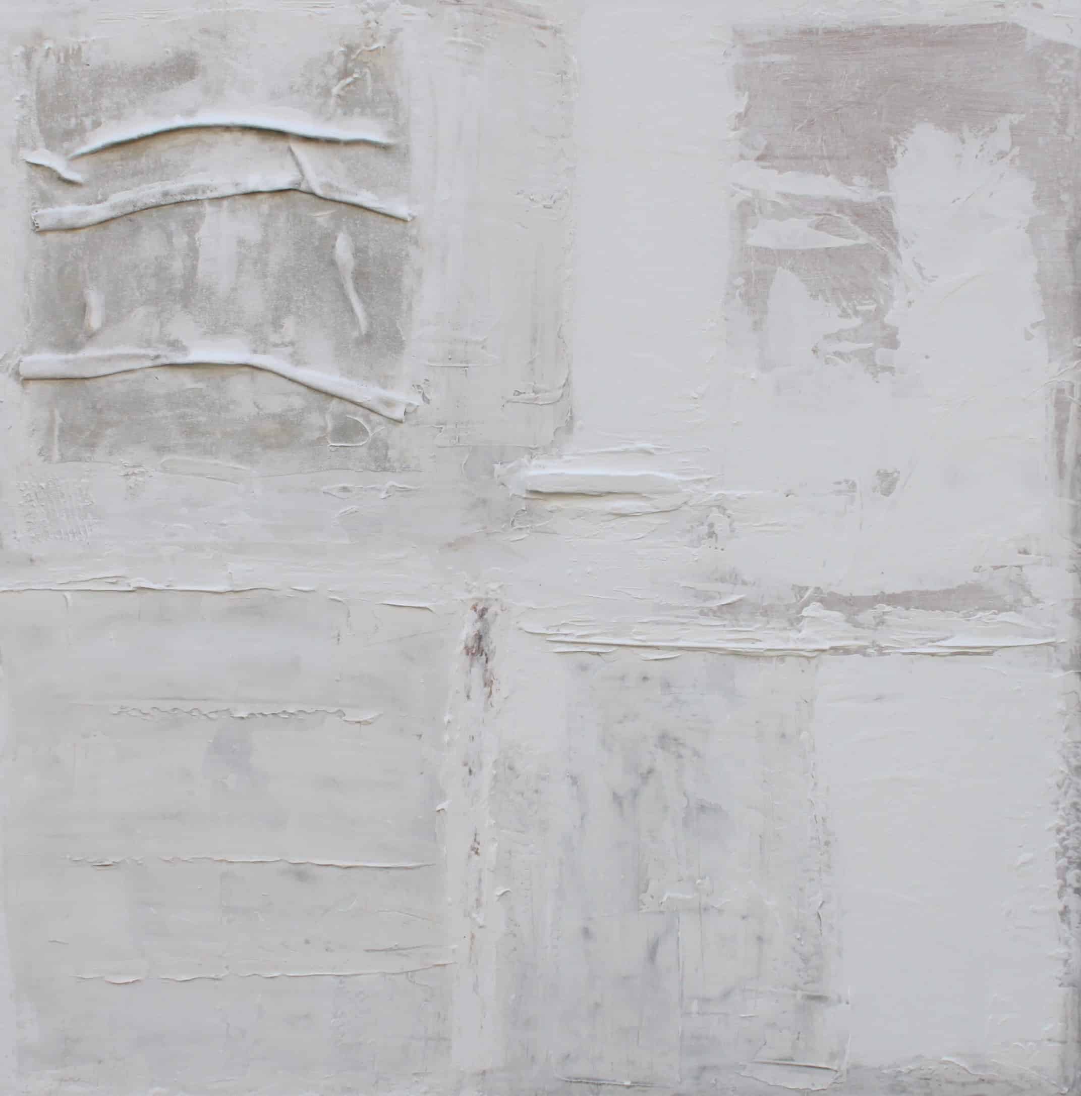 Cuadro original pintado a mano en acrílico sobre lienzo de estilo wabi sabi, con mucha textura y volumen, consiguiendo un acabado Collage. Tonalidades blancas en sus diferentes tonos combinados entre si. Obra inspirada en paisajes nevados