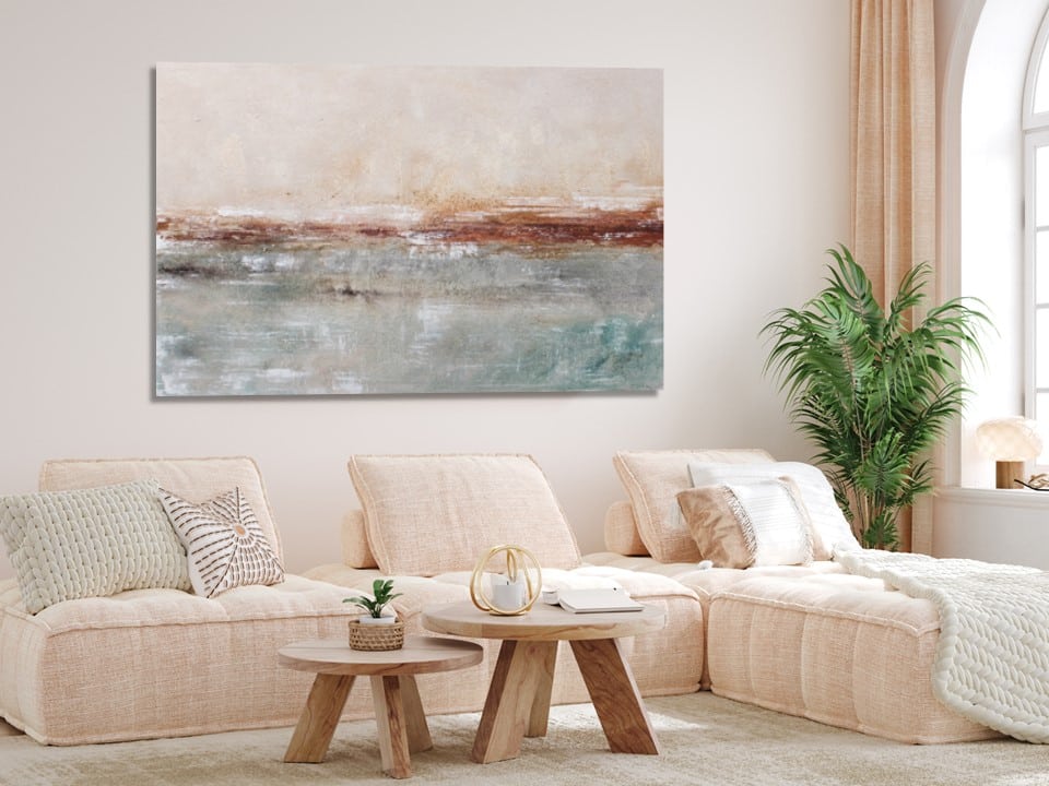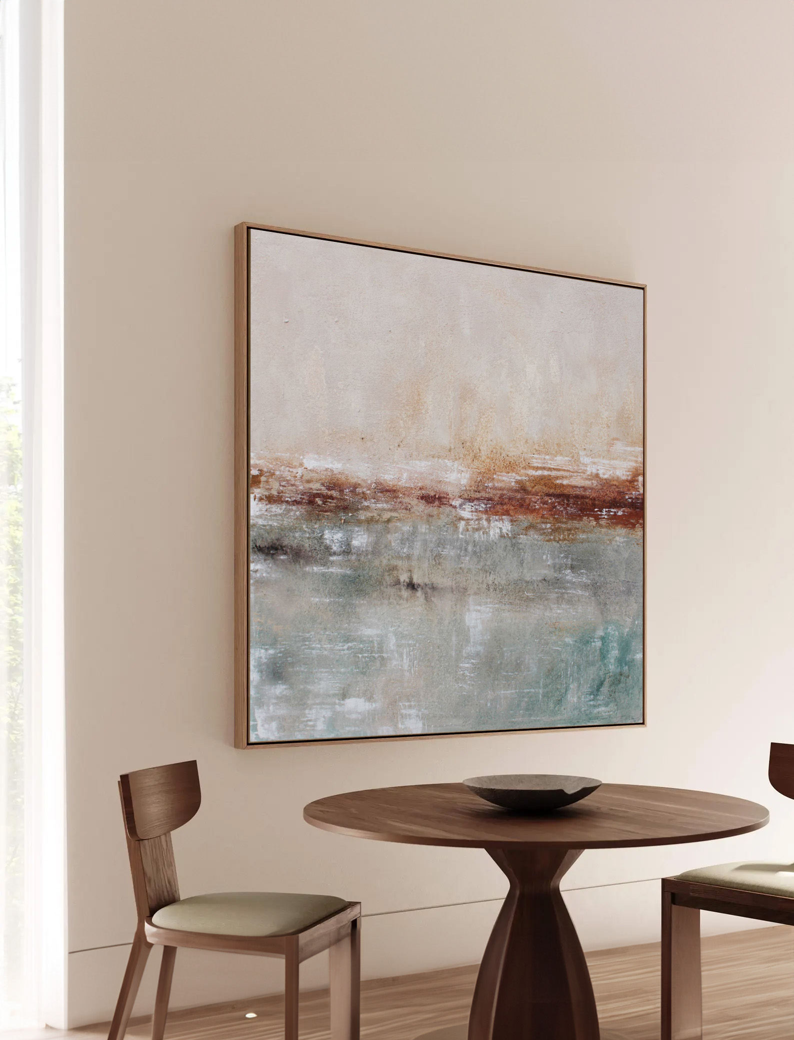 Cuadro abstracto pintado al óleo pintado a mano en nuestro Atelier por artistas de Bellas Artes de Home-Original. Lienzo y pinturas acrílicas de gran calidad. El Bastidor es madera de pino tipo finger (no se dobla) con perfil de 35×30. La madera proviene de bosques sostenibles. El Lienzo es Tela de algodón poliéster con imprimación artesana clásica de bellas artes con base de cola y resinas acrílicas. El lienzo montado sobre el bastidor de forma totalmente artesana, consiguiendo un acabado sin destensados.