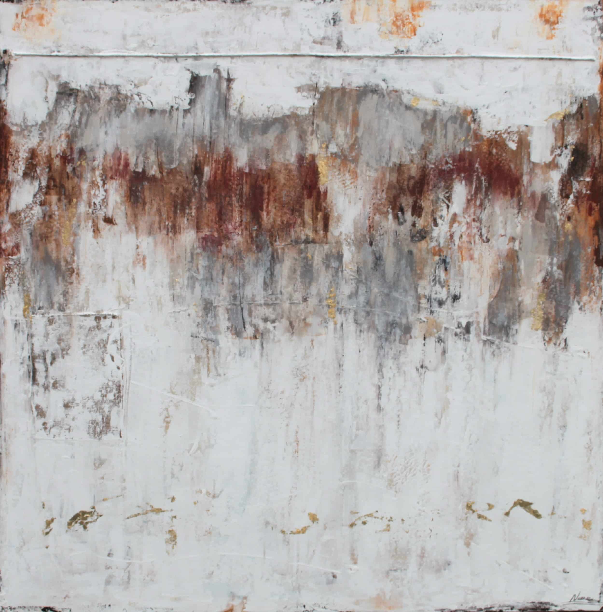 Cuadro pintado a mano en acrílico sobre lienzo. Totalmente acabado y montado, listo para colgar en su pared, con texturas. Colores marrones en su gama con el fondo en blanco roto, hacen de esta obra un cuadro muy elegante.