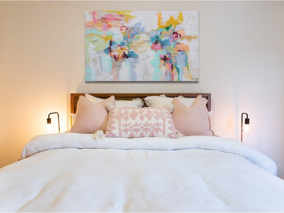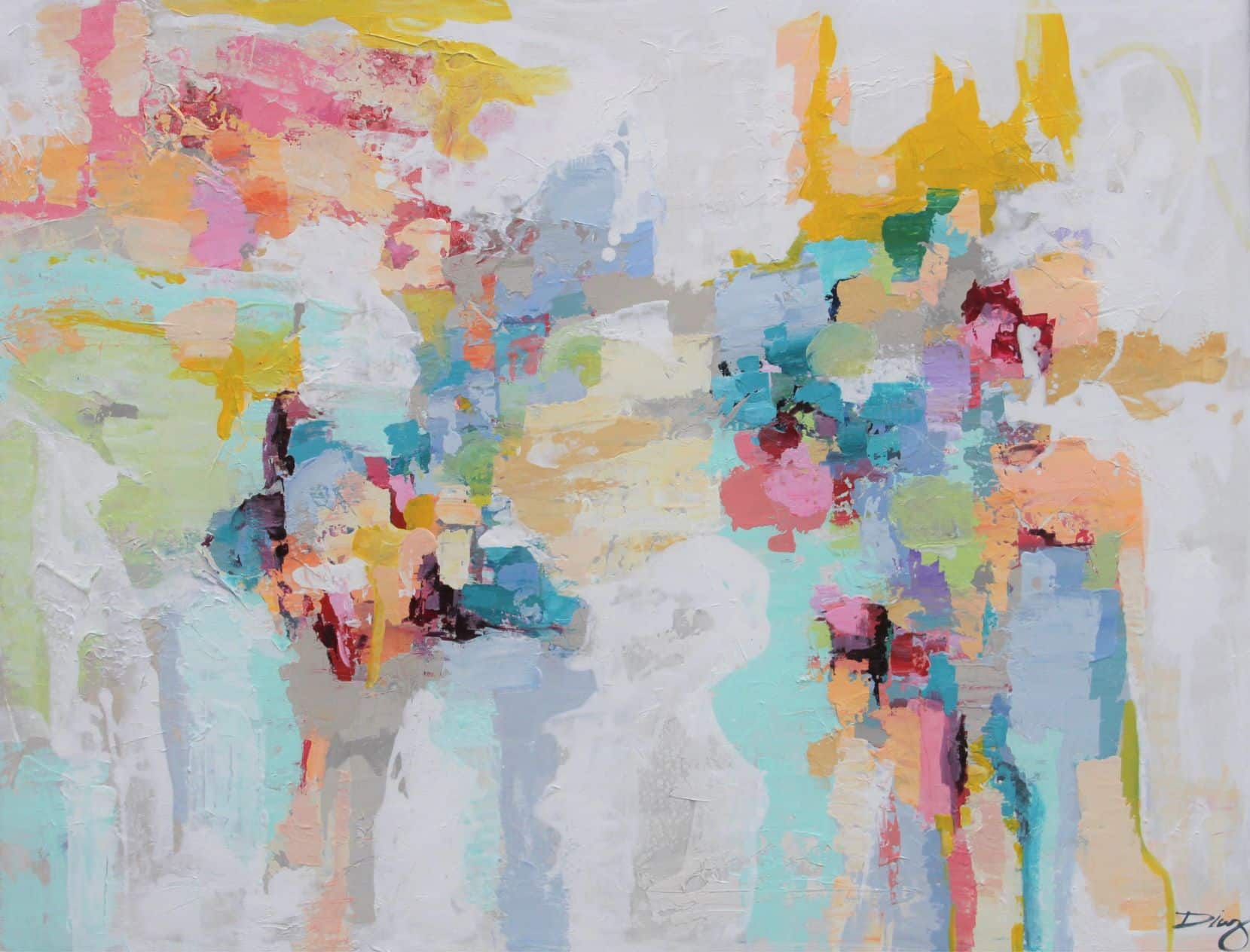 Cuadro original pintado a mano en acrílico sobre lienzo, con texturas. De gran colorido y viveza, mezclando colores pastel, los que le dan frescura y juventud a este cuadro.