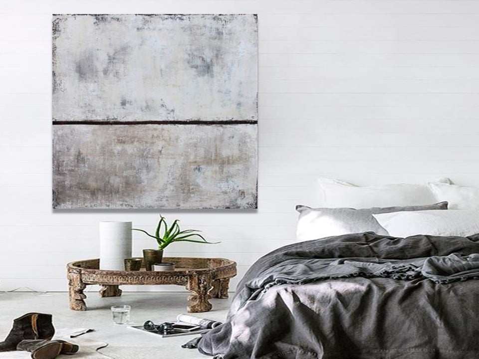 Cuadro pintado a mano en acrílico sobre lienzo de estilo Cuadro original pintado a mano en acrílico sobre lienzo de estilo wabi sabi, con mucha textura y volumen, consiguiendo un acabado Collage. Totalmente acabado y montado, listo para colgar en su pared, con texturas. Tonalidades Beige, blanco roto, marrones y tonalidades arena, con bastante textura y pintado a espátula. La franja central en marrón oscuro