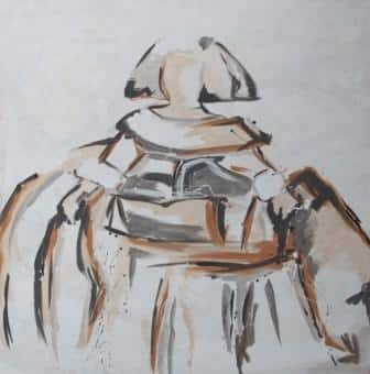 Cuadro pintado a mano de una menina en estilo boceto abstracto, con pinceladas sueltas en tonos tierra, gris y negro sobre fondo claro. Su trazo gestual y minimalista aporta un aire moderno y elegante, perfecto para decoración contemporánea.
