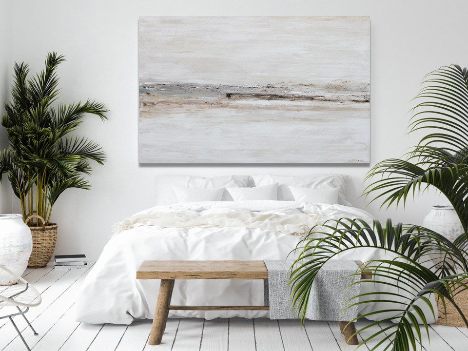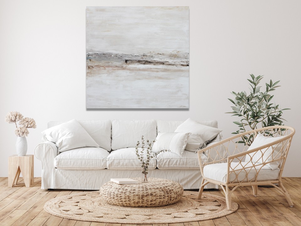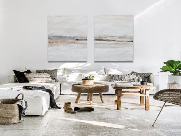 Este cuadro encarna el espíritu del Wabi-sabi al encontrar belleza en la simplicidad y la imperfección. Su paleta de colores neutra, la textura evocadora y la composición asimétrica crean una obra que se siente auténtica y en armonía con la naturaleza. Invita a una apreciación de lo sutil y lo fugaz, fomentando una sensación de calma y tranquilidad.
