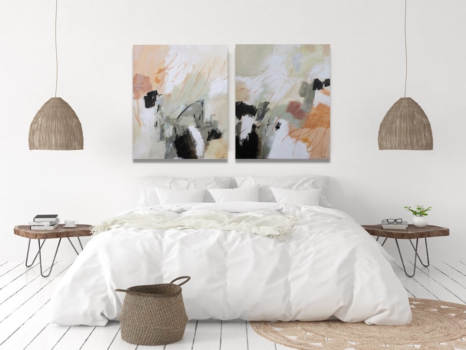 Sumérgete en la belleza de la Toscana con este cautivador díptico. Dos cuadros pintados a mano en acrílico sobre lienzo te transportarán a los pintorescos paisajes de Montepulciano, donde el tiempo parece detenerse. La paleta de colores, dominada por los tonos beige y naranjas suaves, evoca la calidez de la tierra toscana y la luz dorada del atardecer. La ausencia de textura en este caso permite que los colores se fundan suavemente, creando una atmósfera serena y acogedora. El contraste lo aportan las pinceladas gruesas en negro, blanco, teja, verde piedra y verde suave. El precio indicado en el desplegable incluye los dos cuadros